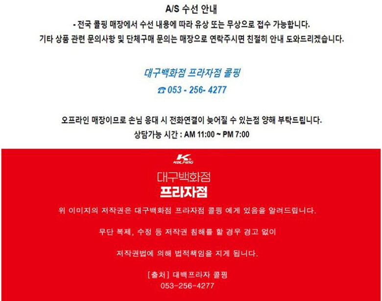 A/S 책임자와 전화번호 : AS 및 기타 문의 사항은 해당 매장 [김연호,053-256-4277] 으로 전화주시면 감사하겠습니다.
