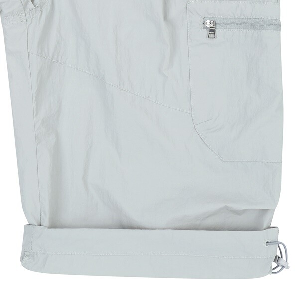 여유 있는 힙과 허벅지 부분에 변형 지퍼 포켓이 있어 에어리한 볼륨을 유도한 새로운 간지의 화섬 팬츠입니다.