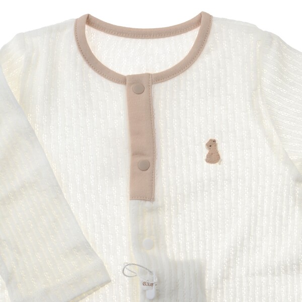 고급스러운 신소재 세로 골지 자가드 소재에 귀엽고 앞배색단으로 포인트을주어 디자인한 슬림우주복?