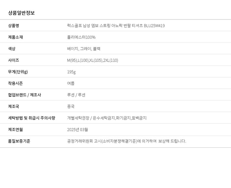 3. 치수 M(95),L(100),XL(105),2XL(110)