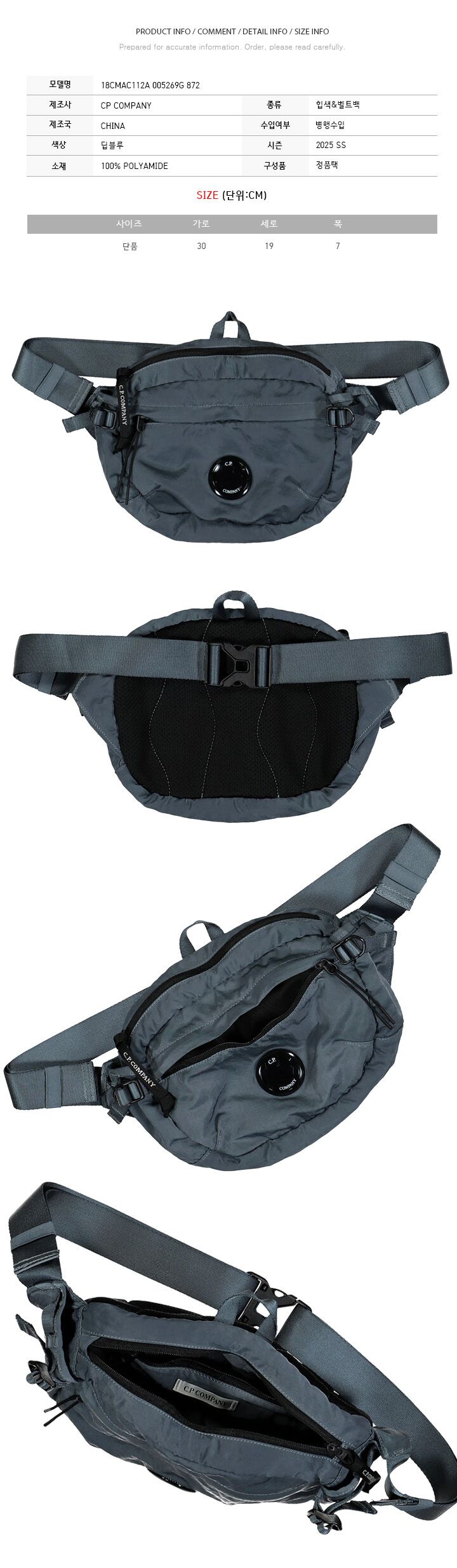 - #리본즈코리아 #8556240-142979411 #[명품] #CP #25SS #렌즈 #와펜 #힙색벨트백 #딥블루 #18CMAC112A #005269G #872 #남성 #가방/핸드백 #힙색 #벨트백/힙색