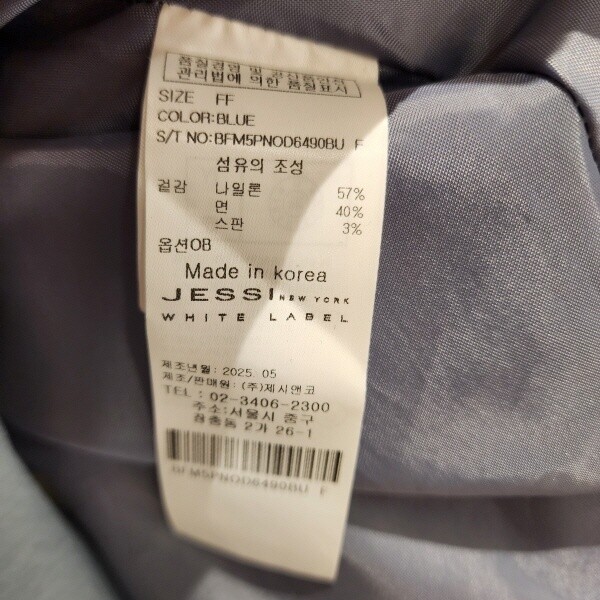 | 1. 제품 소재 (섬유의 조성 또는 혼용률을 백분율로 표시, 기능성인 경우 성적서 또는 허가서) | 나일론57%,면40%,스판3% |