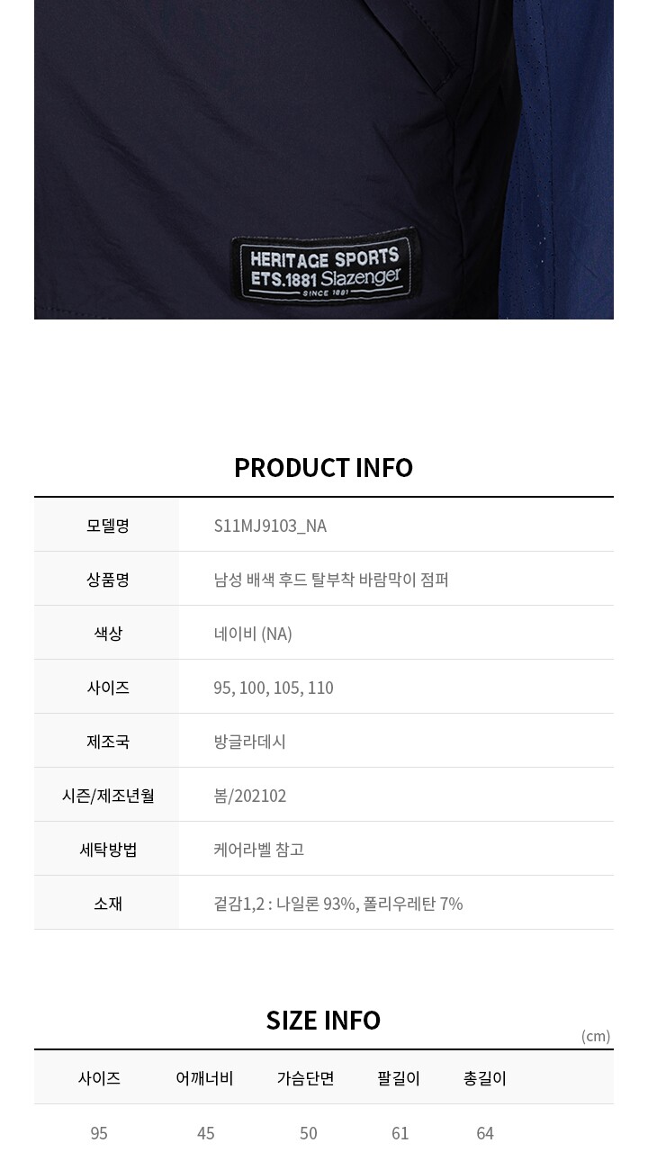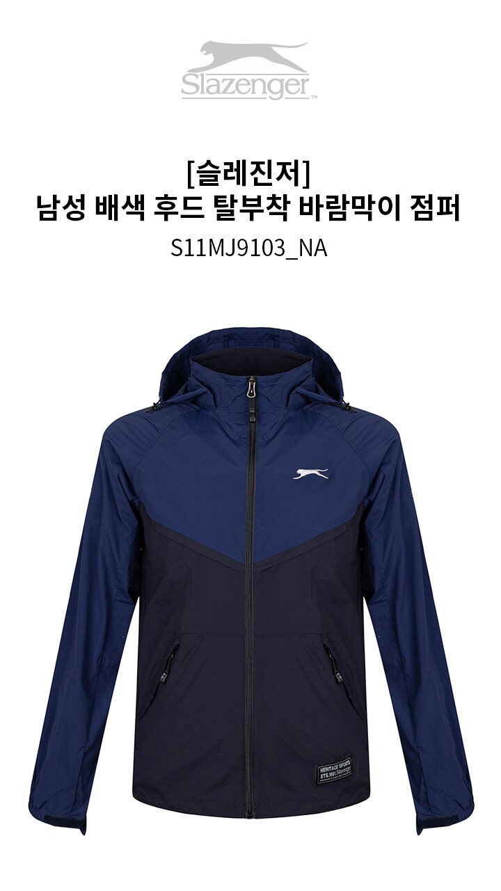 슬레진저 남성 배색 후드 탈부착 바람막이 점퍼 네이비