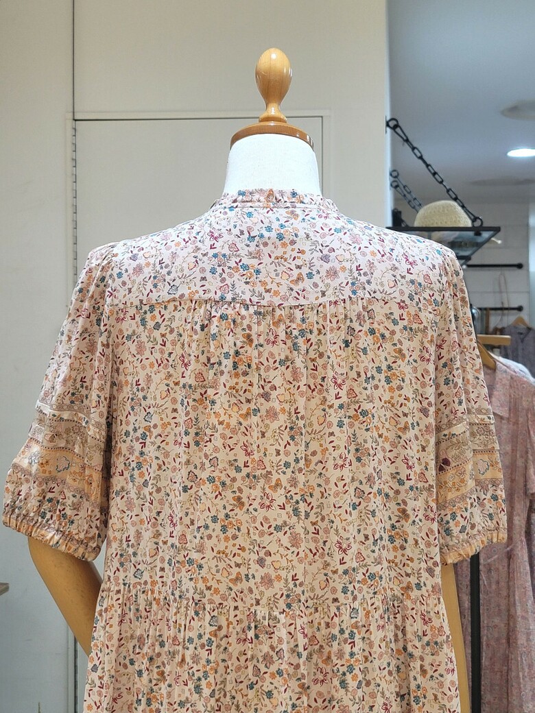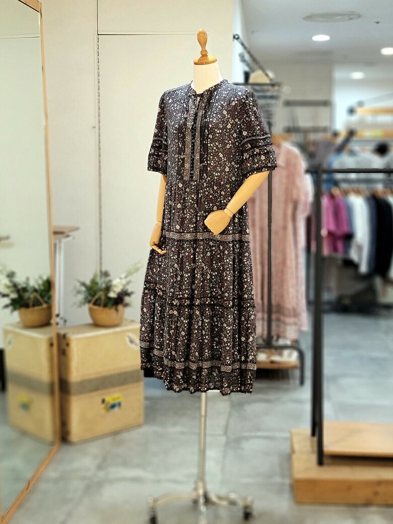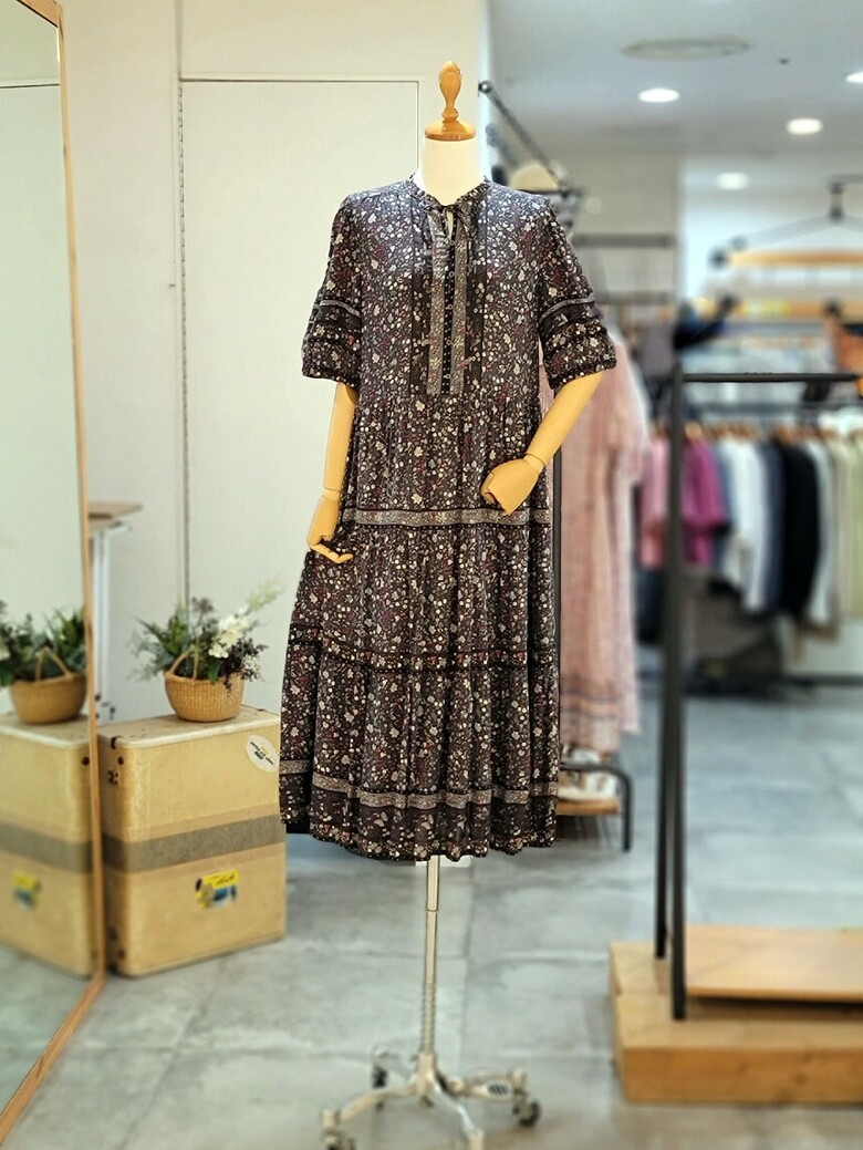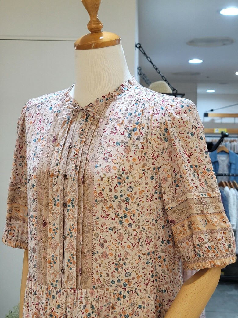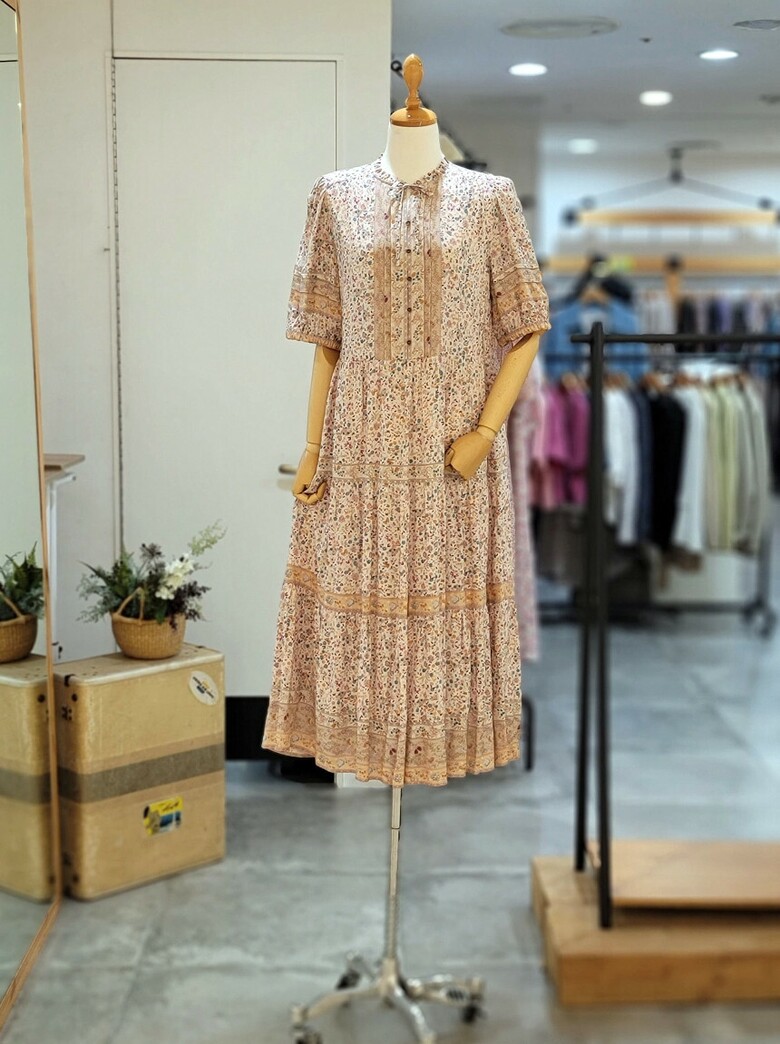 플라워 패턴 보더 믹스 원피스 T244MOP283W