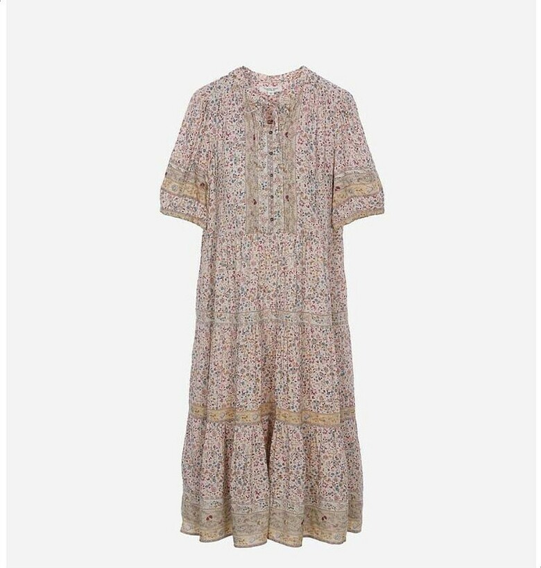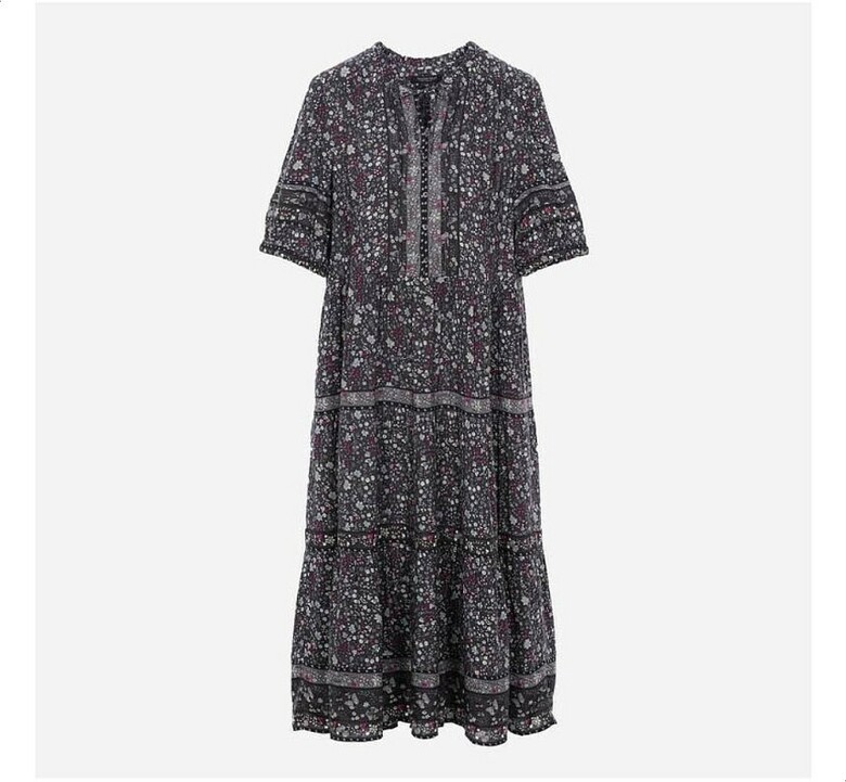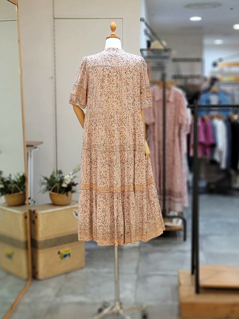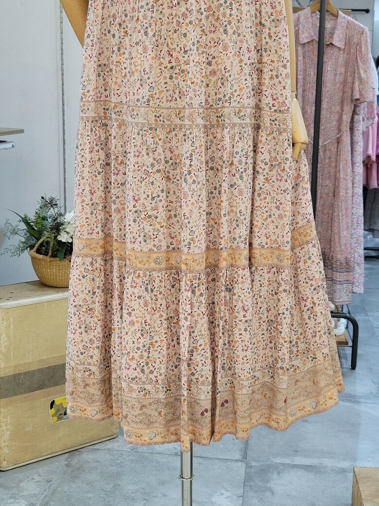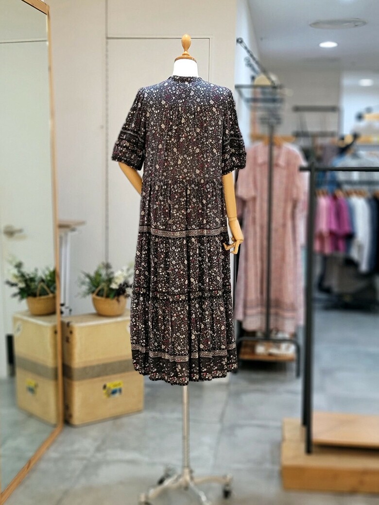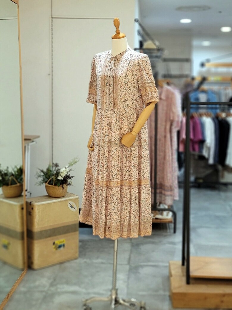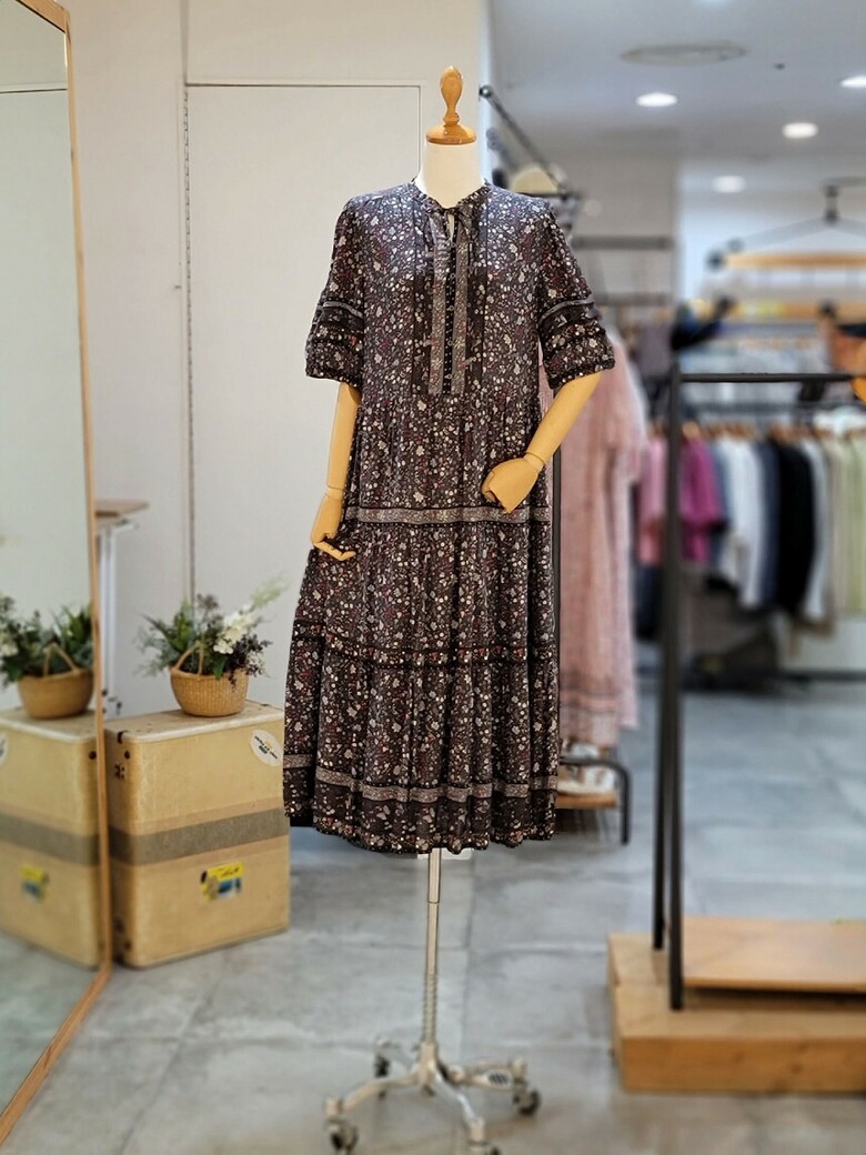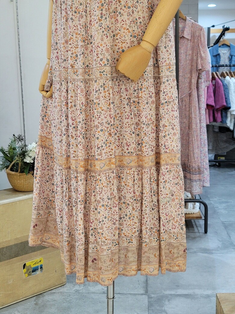 플라워 패턴에 보더 패턴이 믹스된 롱 원피스입니다.
