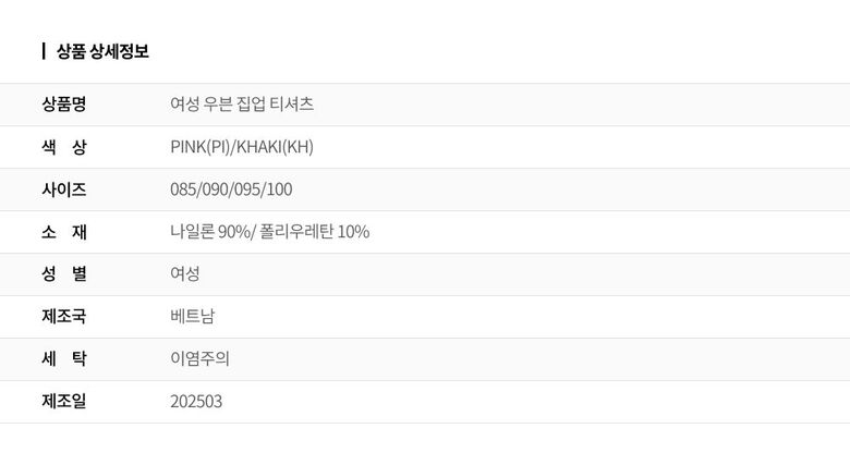 | 2. 색상 | 색상:PINK(PI)/KHAKI(KH) |