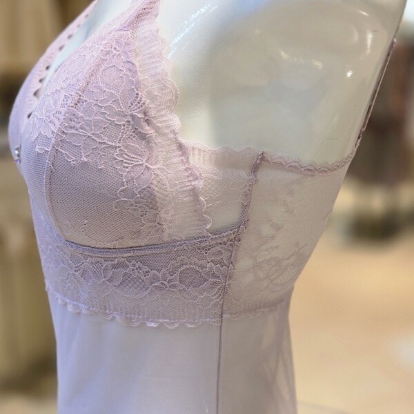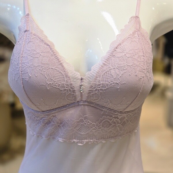레이스가 세련된 스트랍 컵란쥬로 삼각몰드를 사용하여 가슴을 자연스럽게 감싸주며 컵부분에는 전체 레이스를 사용하고 몸판에는 투명한 망을 사용하여 시스루한 매력이 돋보이는 제품