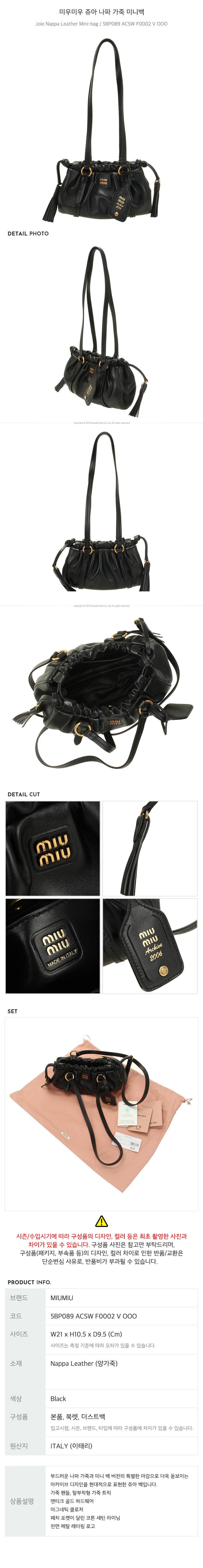 - #리본즈코리아 #5BP089ACSWF0002VOOO #[명품] #미우미우 #쥬아 #나파 #가죽 #미니백 #/ #5BP089 #ACSW #F0002 #V #OOO #여성 #가방/핸드백 #토트백