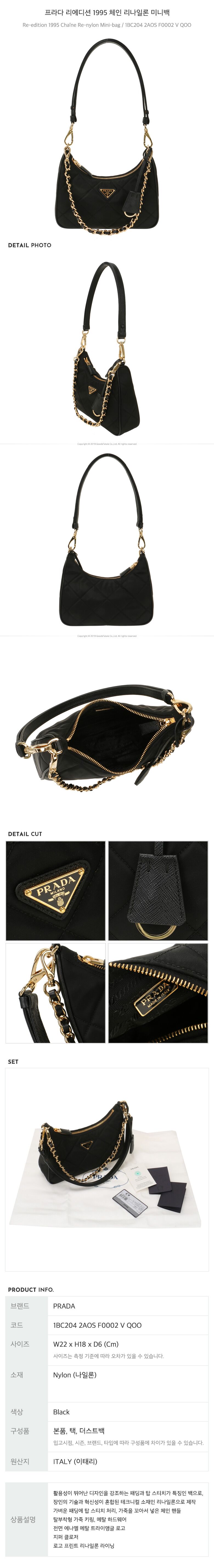 - #리본즈코리아 #1BC2042AOSF0002VQOO #[명품] #프라다 #리에디션 #1995 #체인 #리나일론 #미니백 #/ #1BC204 #2AOS #F0002 #V #QOO #여성 #가방/핸드백 #숄더백/호보백 #숄더백