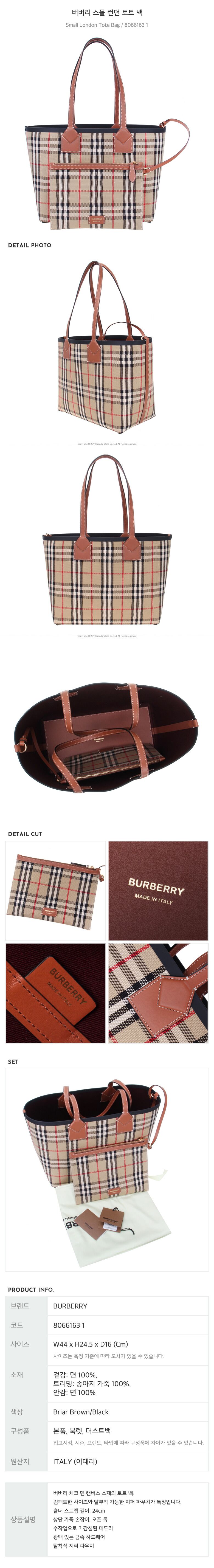 [명품] 버버리 스몰 런던 토트 백 / 8066163 1