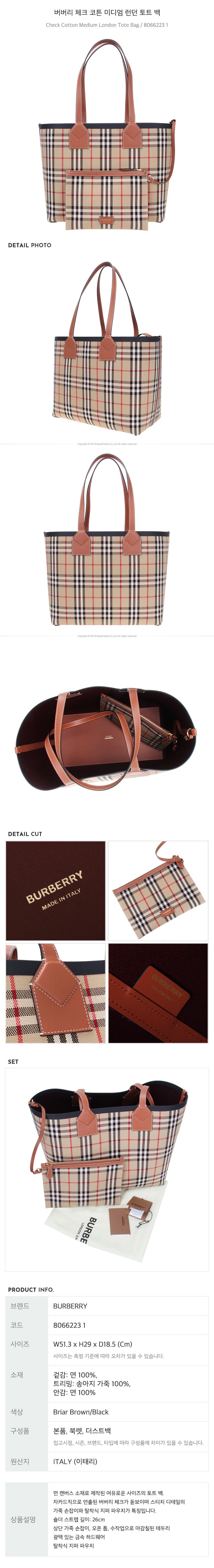 [명품] 버버리 체크 코튼 미디엄 런던 토트 백 / 8066223 1