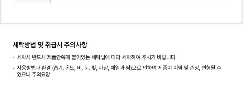 • 처음 배송된 상품상태와 다를 경우(세탁/착용 후 외출하신 경우) 반품이 불가합니다.