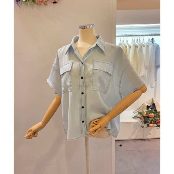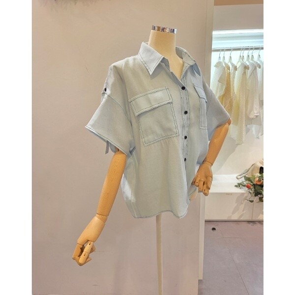CP5WBL58_양포켓 롤업 카라 셔츠