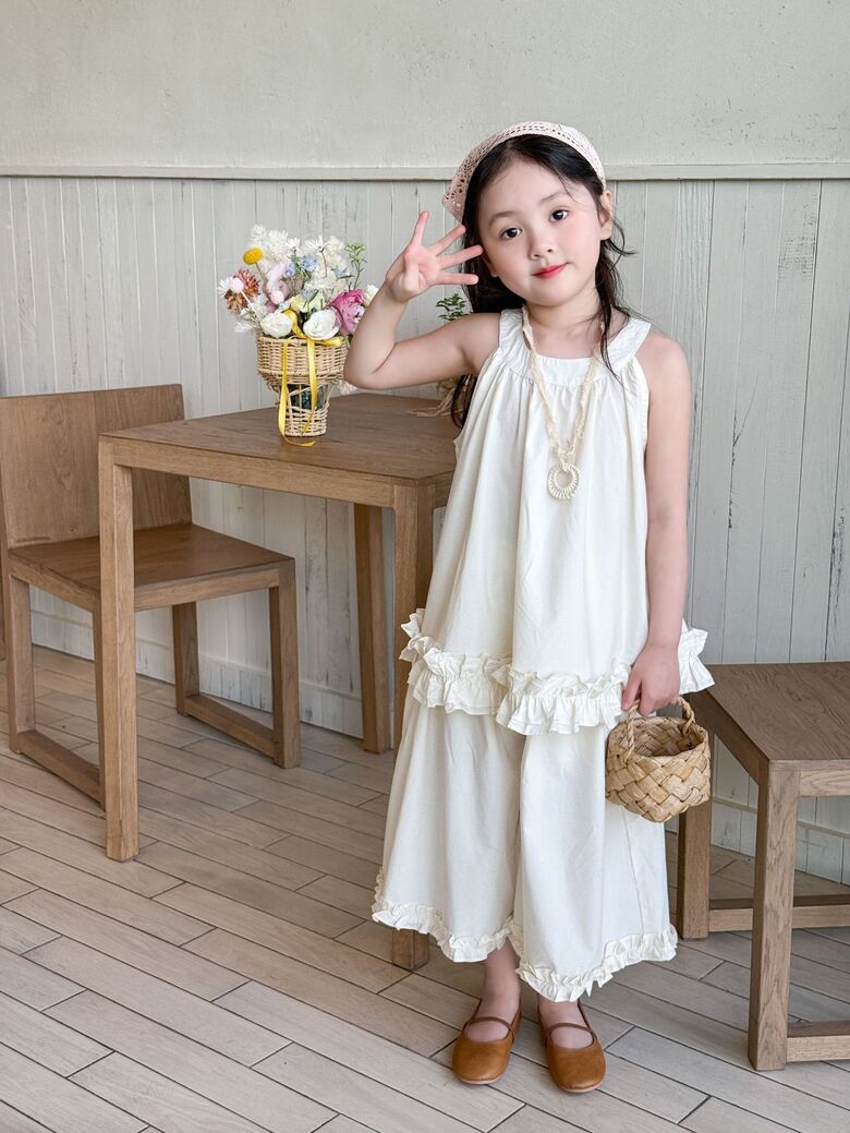 [예약발송] 로니 프릴 와이드 상하복 세트 R14424