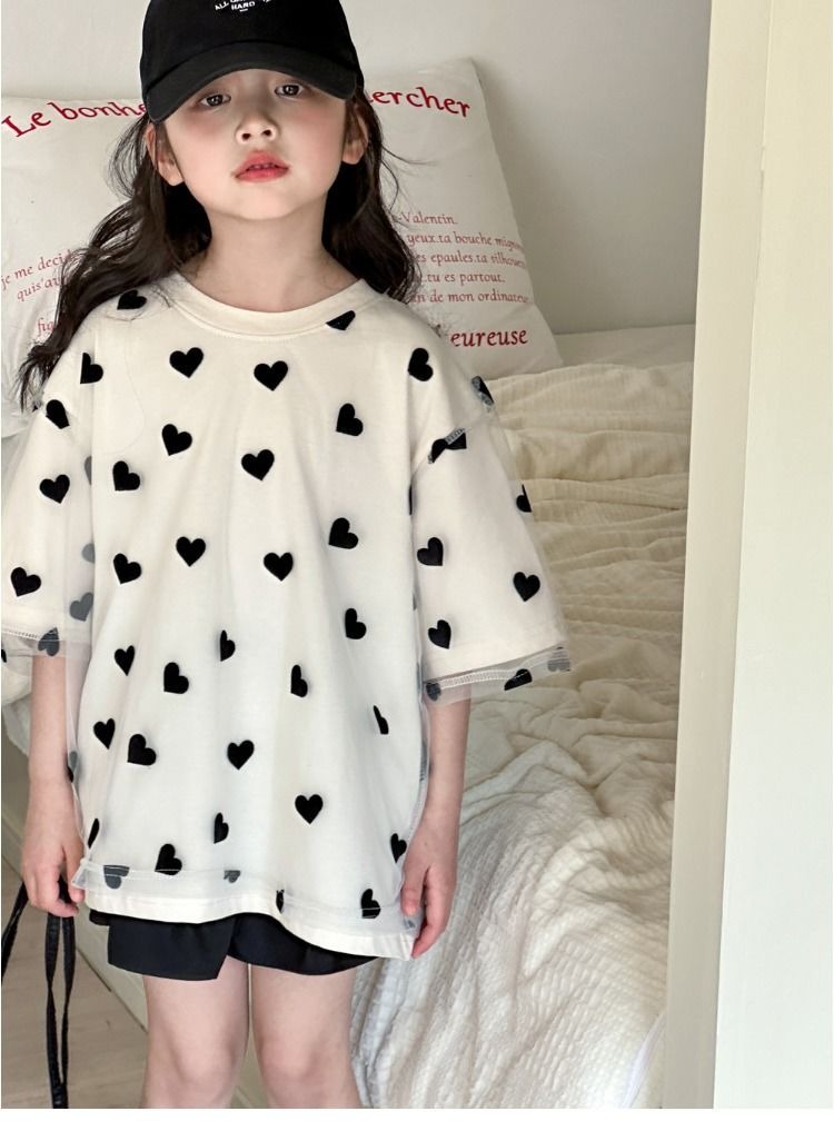 [예약발송] 매쉬 하트 반팔 티셔츠 R14481
