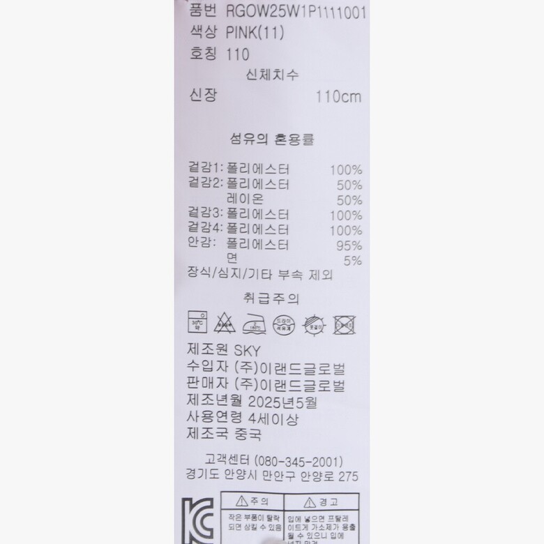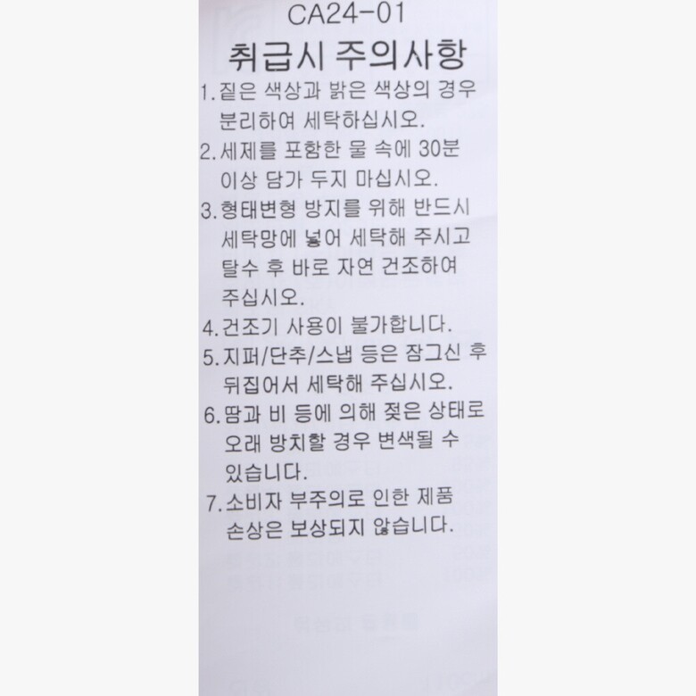 | 6. 세탁방법 및 취급시 주의사항 | 상품상세참조 |