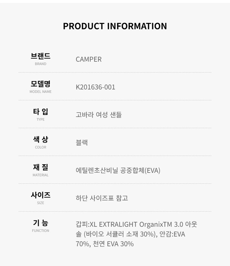 | 4. 제조사 | 캠퍼/MACHO-병행수입 |
