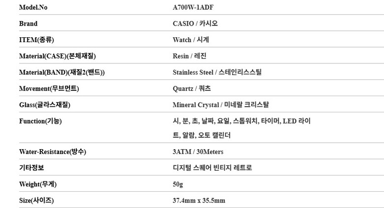 7-2. 시계 - 기능, 방수 등 WATER RESISTANCE - 3ATM(30Meters)