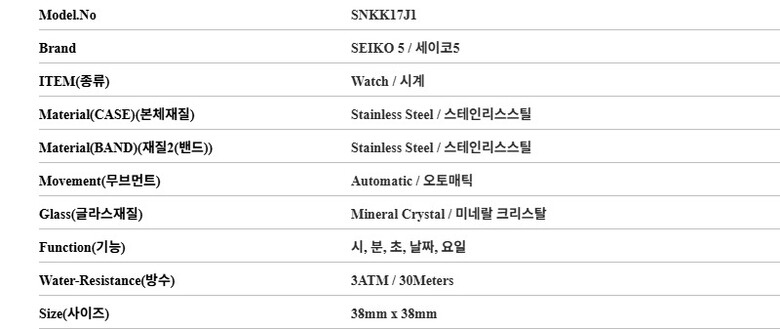 | 3. 제조사 | 세이코5/MACHO-병행수입 |