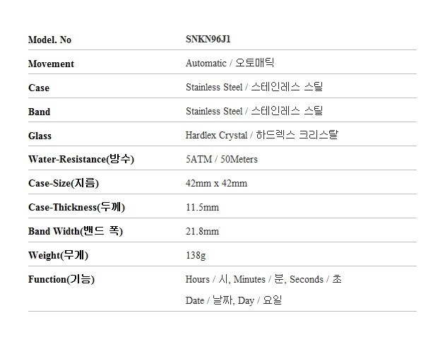 세이코5 SNKN96J1 남성 오토매틱 메탈 시계