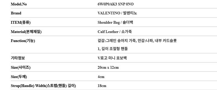 발렌티노 6W0P0AK3 SNP 0NO (P0AK3 SNP 0NO) 가라바니 V로고 미니 호보백 숄더백