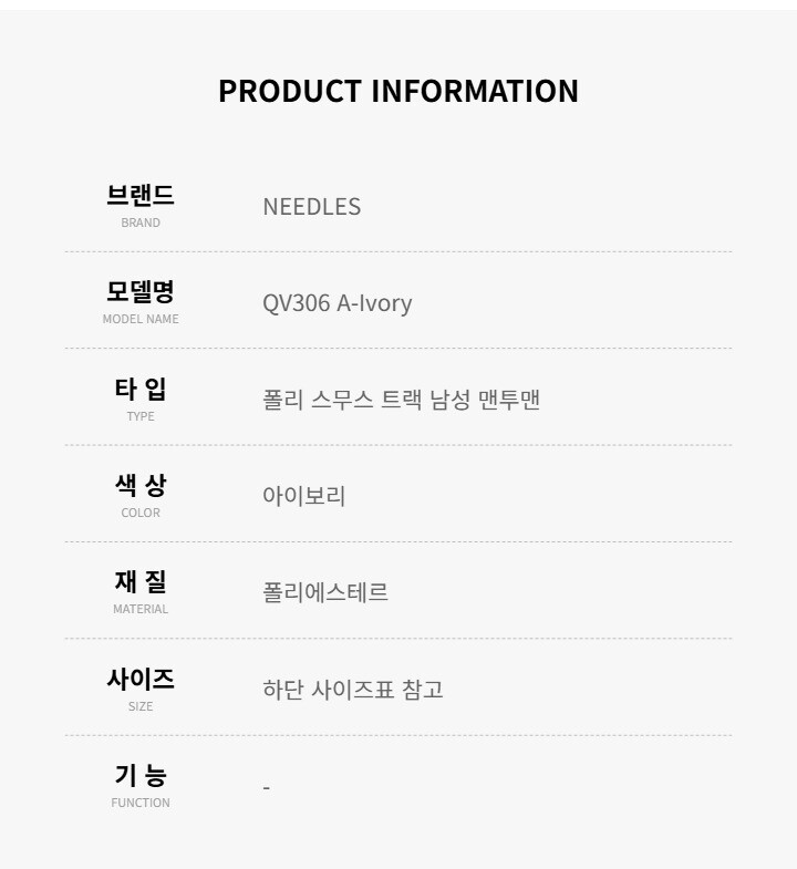 니들스 QV306 A-Ivory 폴리 스무스 트랙 남성 맨투맨