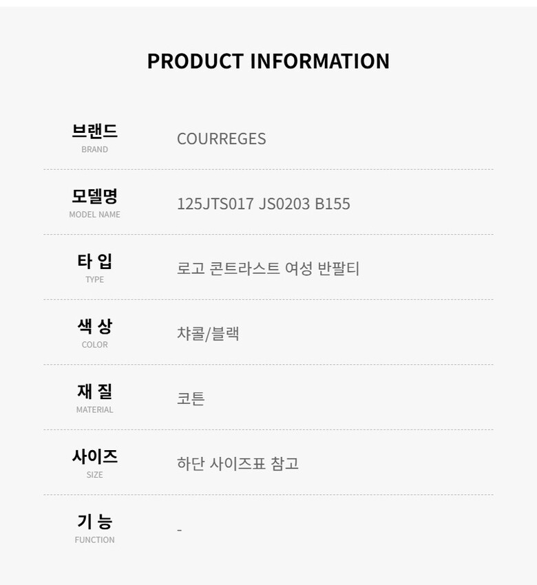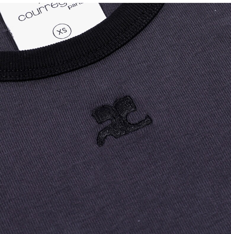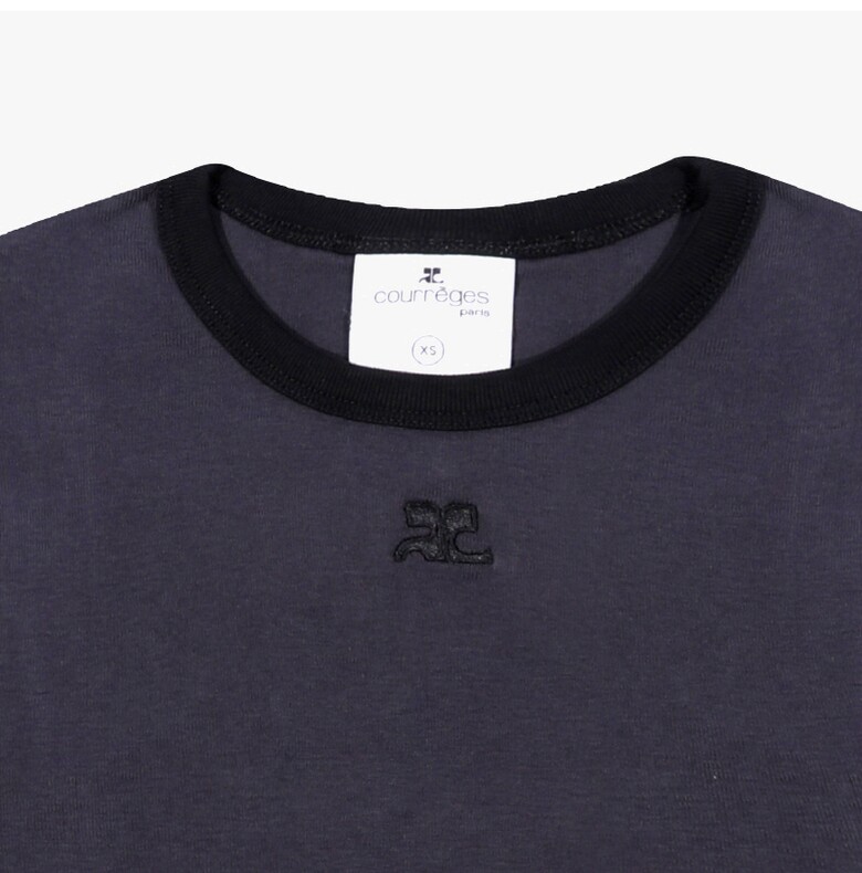 꾸레쥬 125JTS017 JS0203 B155 로고 콘트라스트 링거 여성 반팔티