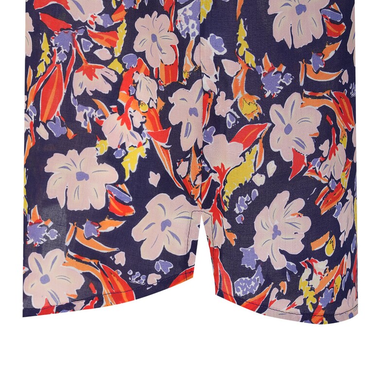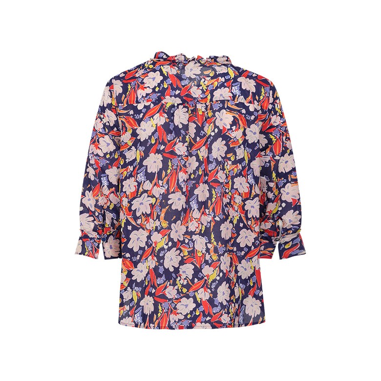 플라워 프린트의 면 아사 블라우스입니다. 넥과 하프 플라켓의 러플과 소매의 러플 디테일로 여성스러움을 더하였습니다.