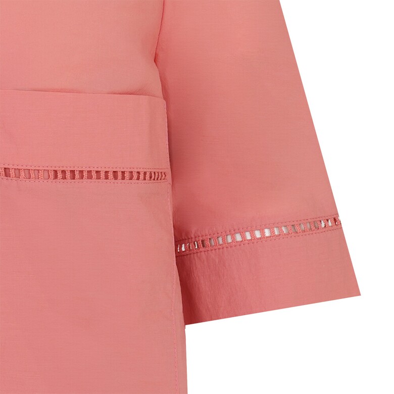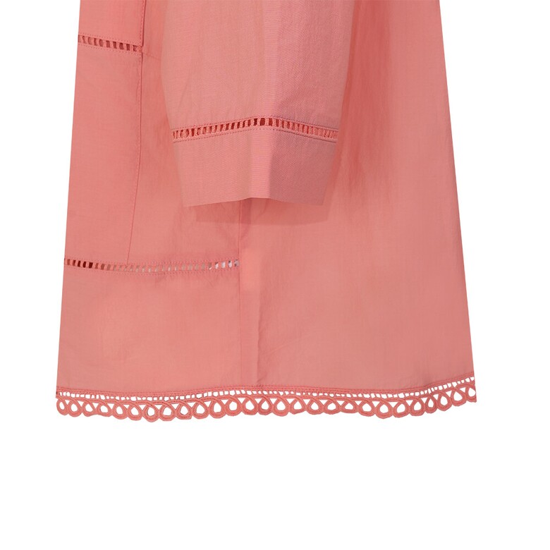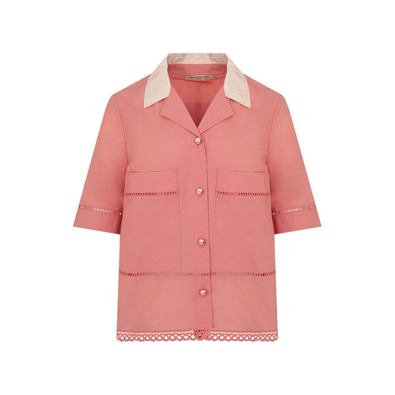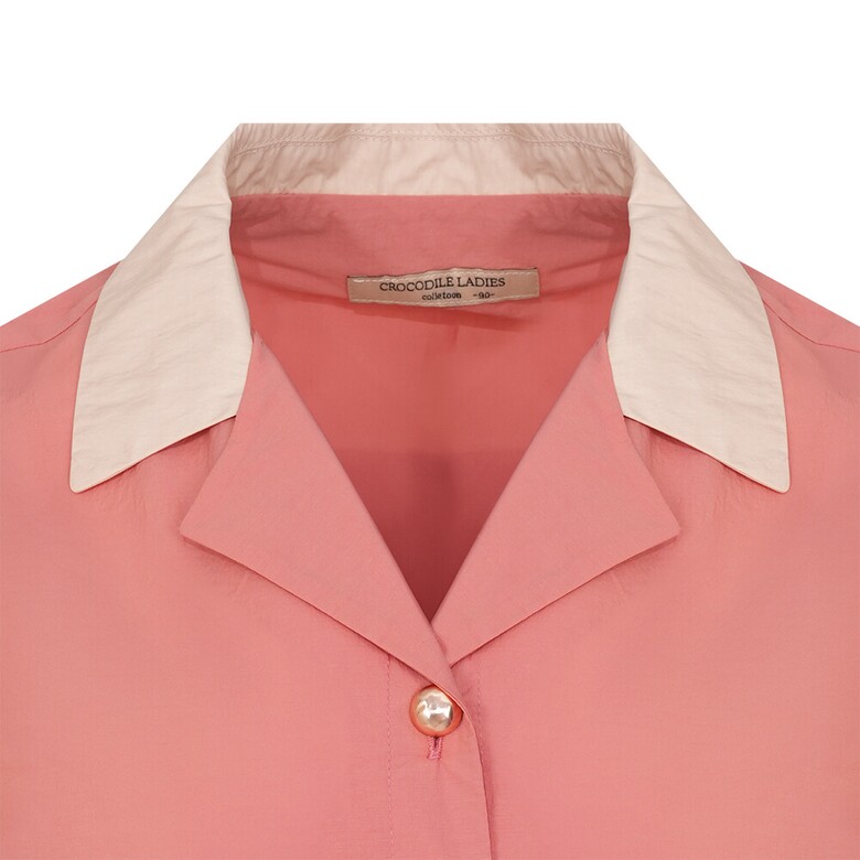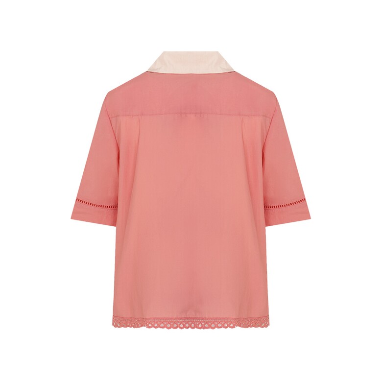 크로커다일레이디 25년 여름 여성 펀칭 레이스 배색 풀오픈 카라 블라우스 CLEMBL302