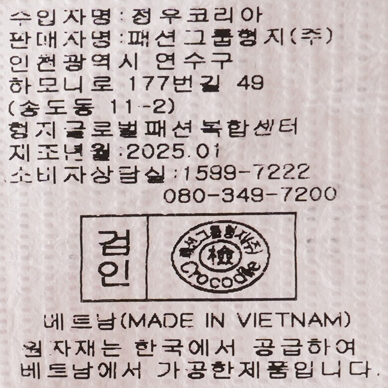 | 1. 제품 소재 (섬유의 조성 또는 혼용률을 백분율로 표시, 기능성인 경우 성적서 또는 허가서) | 상품상세참조 |