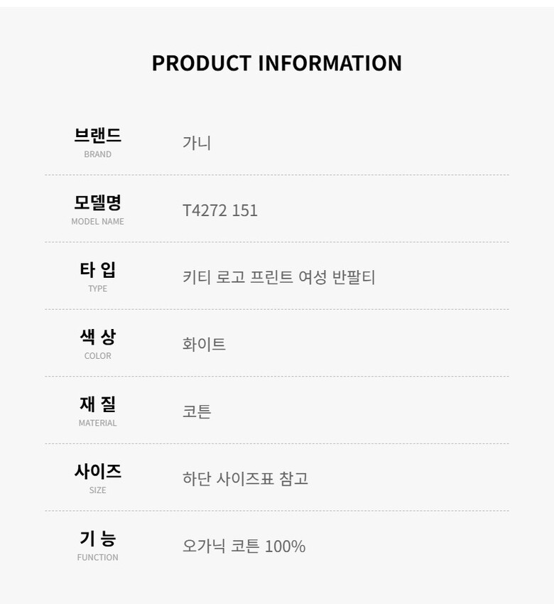 가니 반팔 T4272 151 키티 로고 프린트 여성반팔티 당일발송