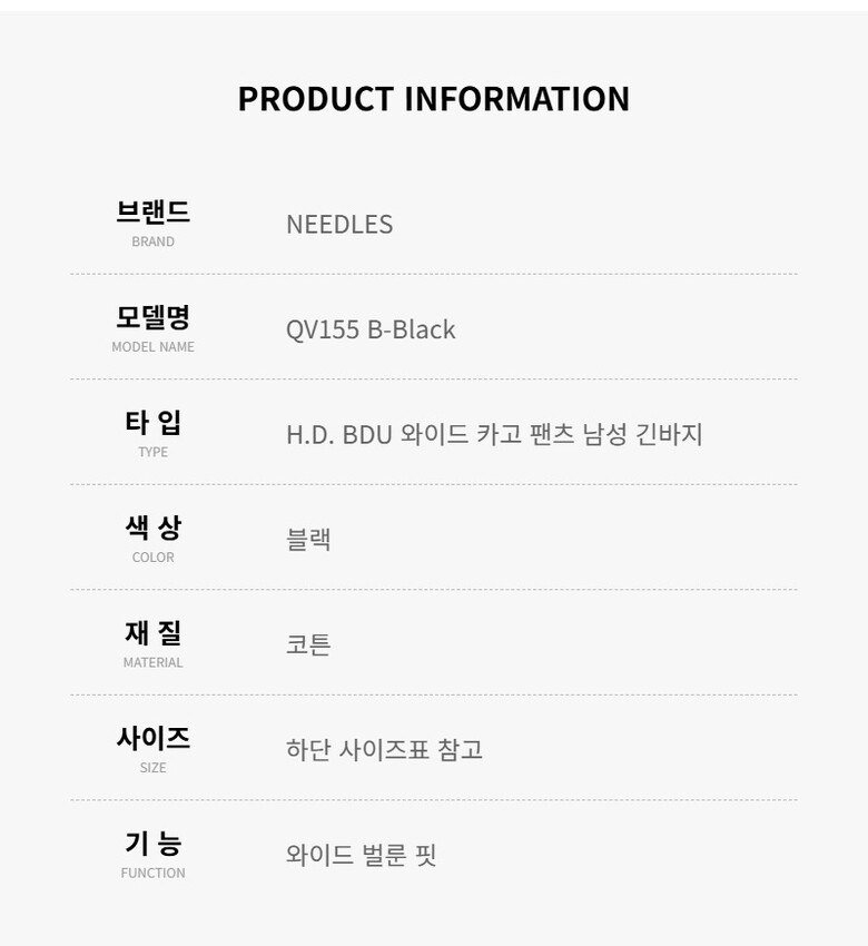니들스 바지 QV155 B-Black 와이드 카고 남성바지 당일발송