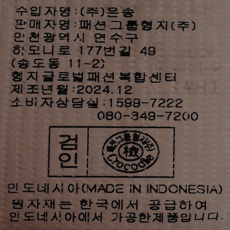 | 1. 제품 소재 (섬유의 조성 또는 혼용률을 백분율로 표시, 기능성인 경우 성적서 또는 허가서) | 상품상세참조 |