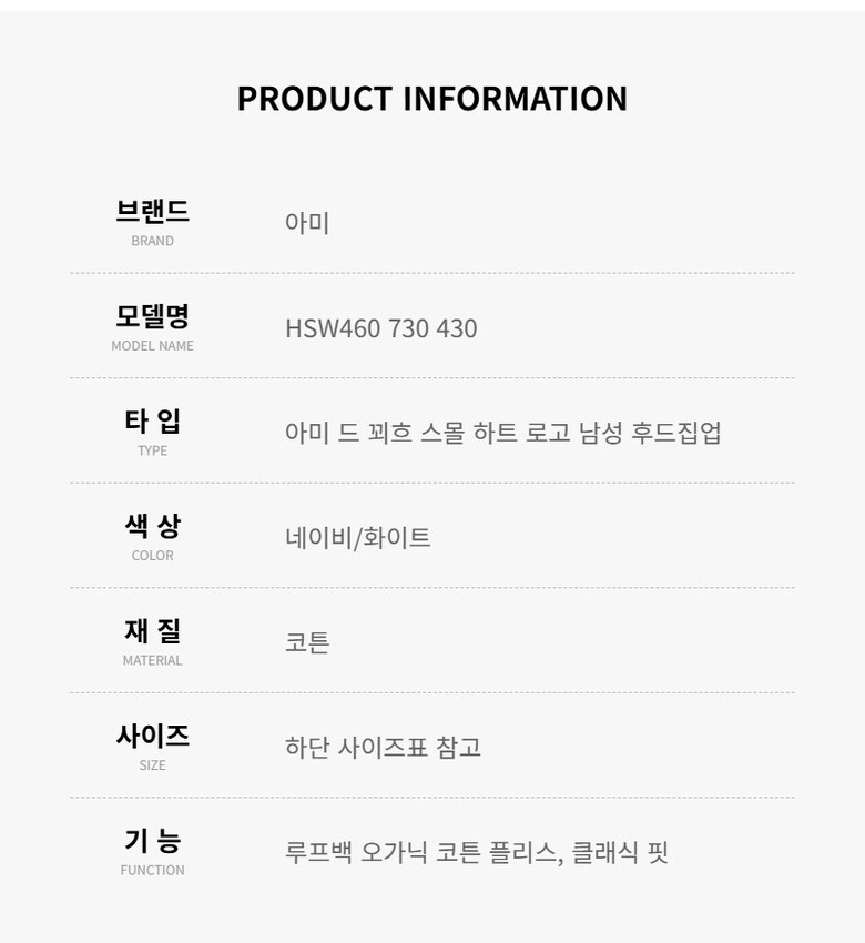 | 6. 세탁방법 및 취급시 주의사항 | 상품상세 참조 |