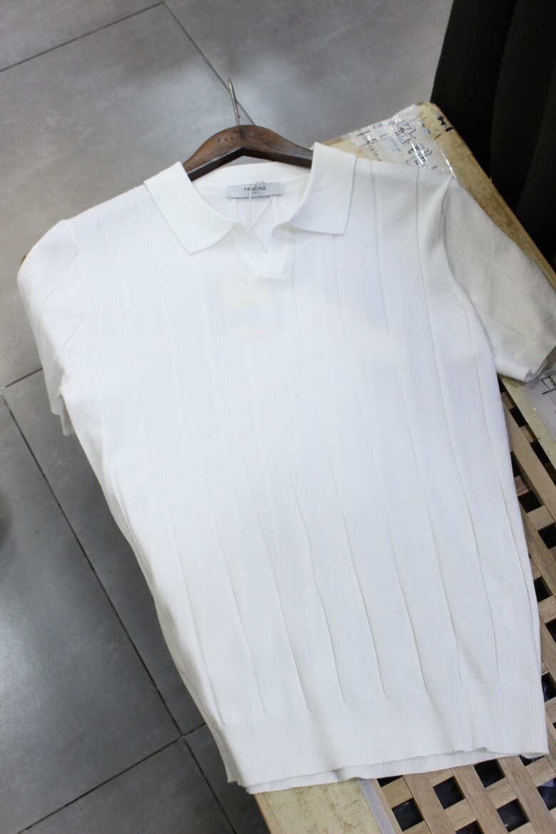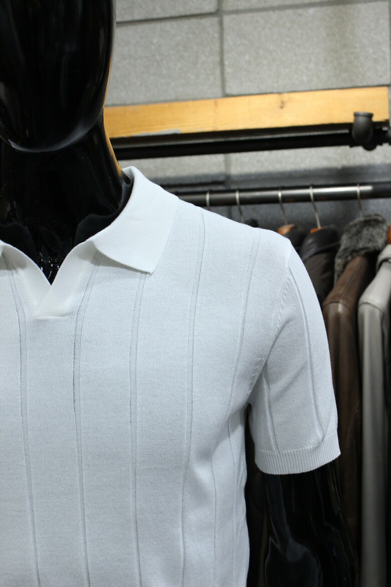 슬림핏조니카라 스트라이프반팔 화이트썸머니트티 m-qnit09wh