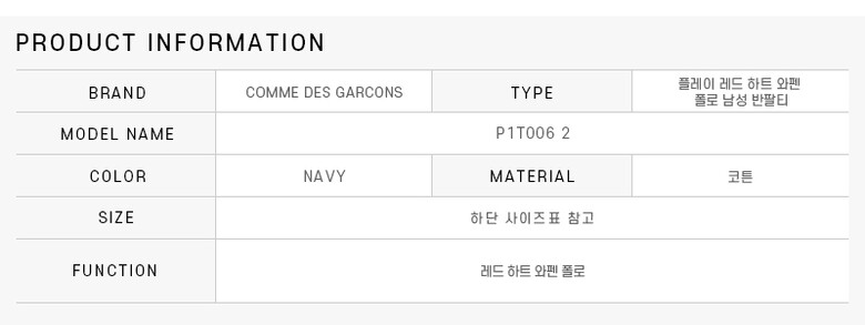 [럭스덕T] 꼼데가르송 P1T006 2 (AX-T006-051 2) PLAY 플레이 레드 하트 와펜 폴로 남성 반팔티