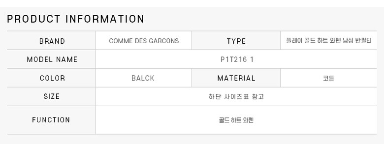 [럭스덕T] 꼼데가르송 P1T216 1 (AX-T216-051 1) PLAY 플레이 골드 하트 와펜 남성 반팔티