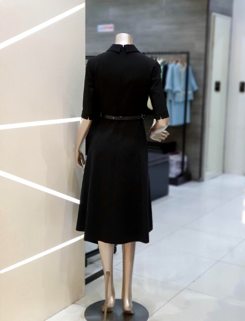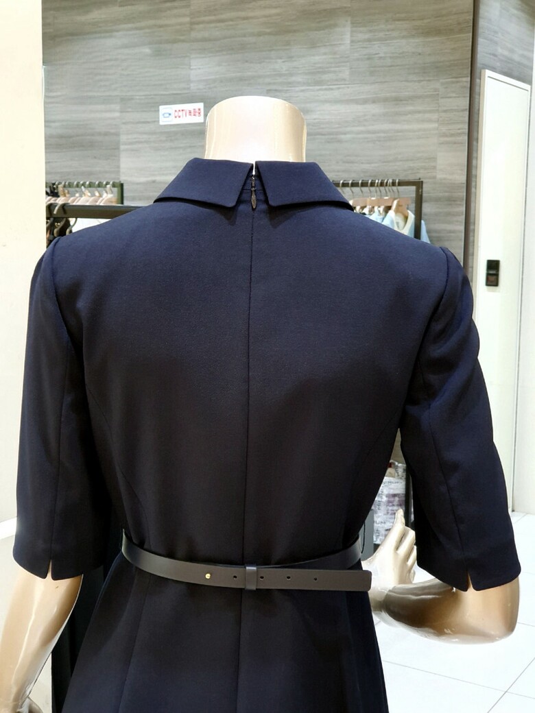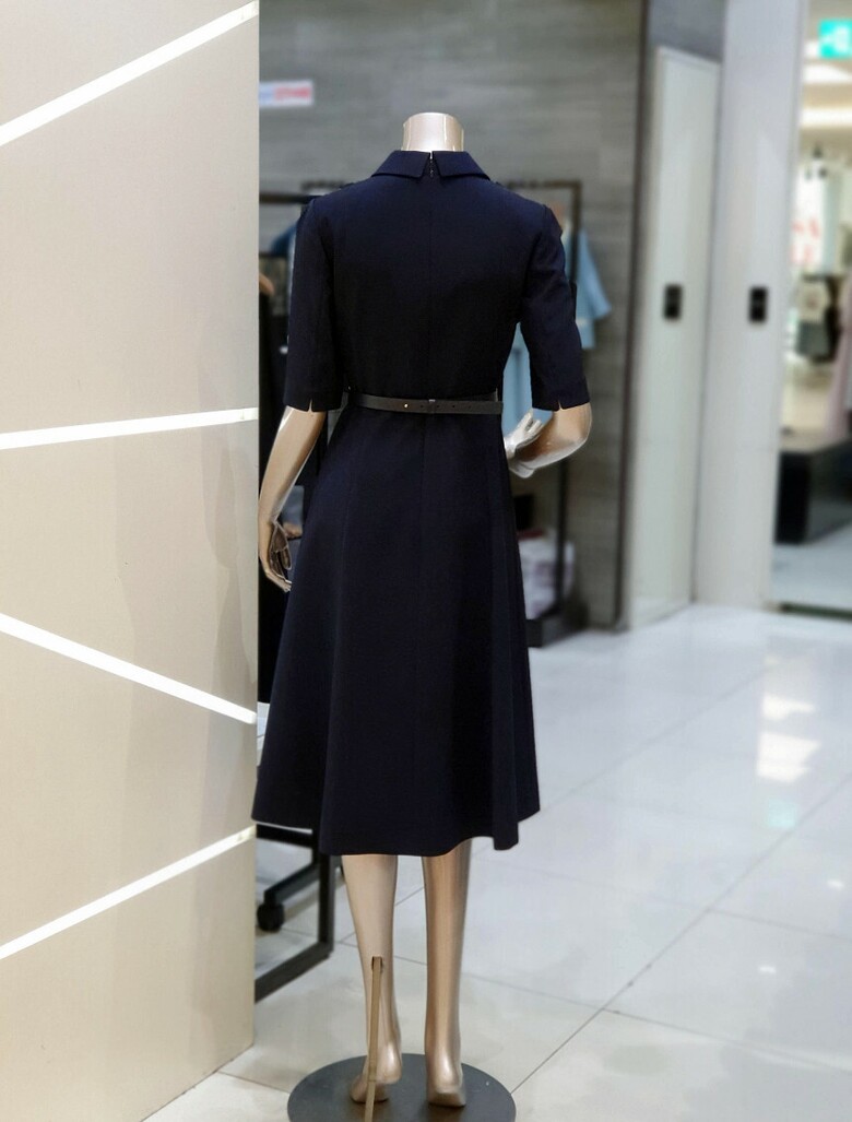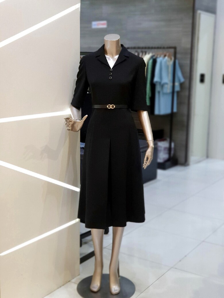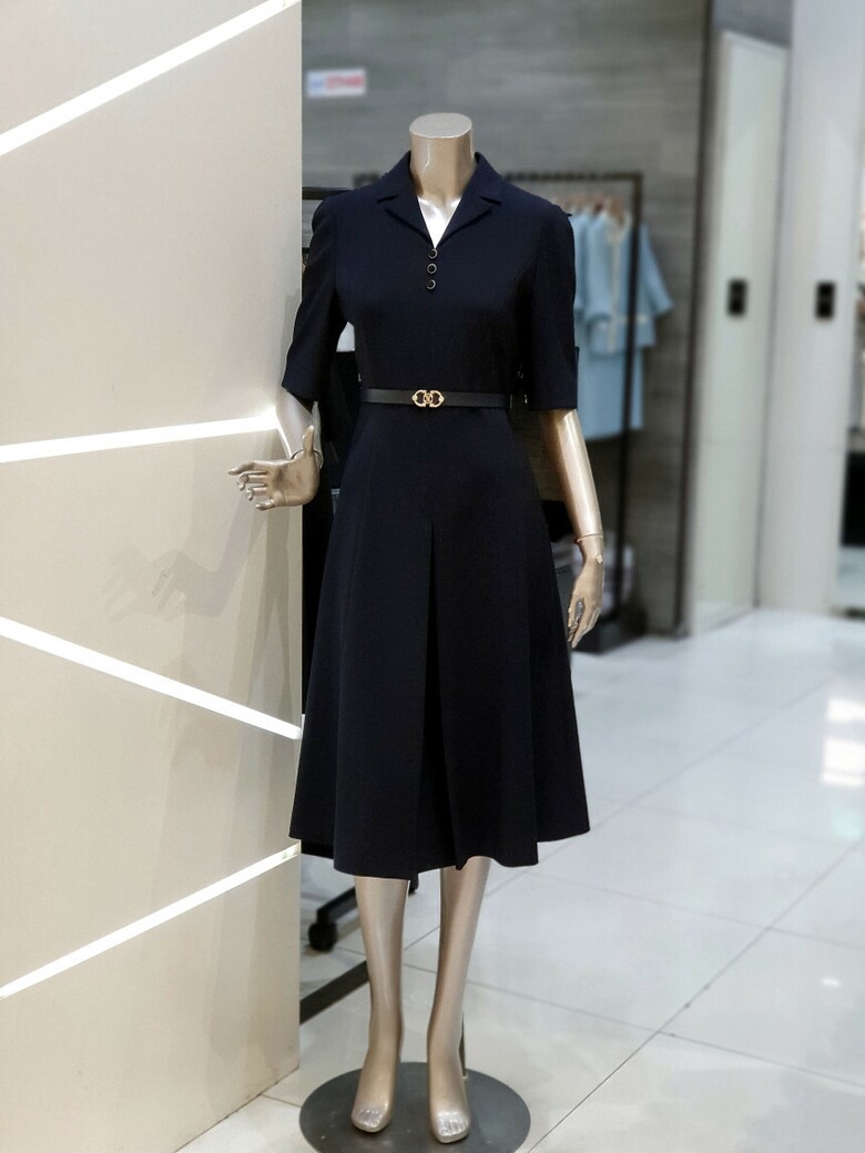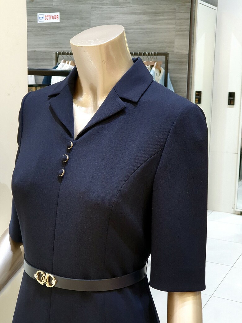 프런트 버튼 장식과 스커트 핀턱으로 입체감을