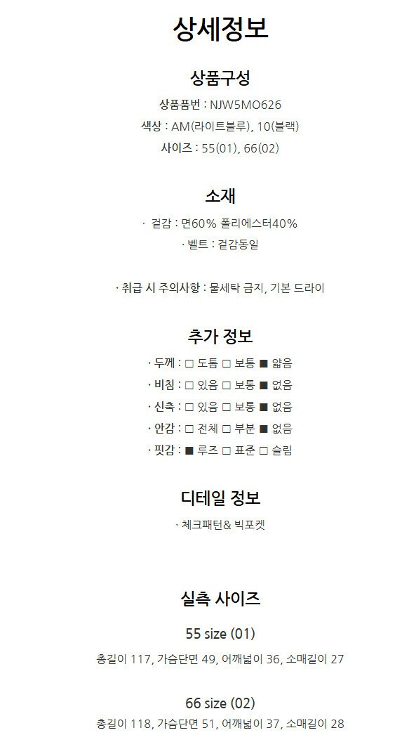 빅포켓 체크 벨티드원피스 NJW5MO626