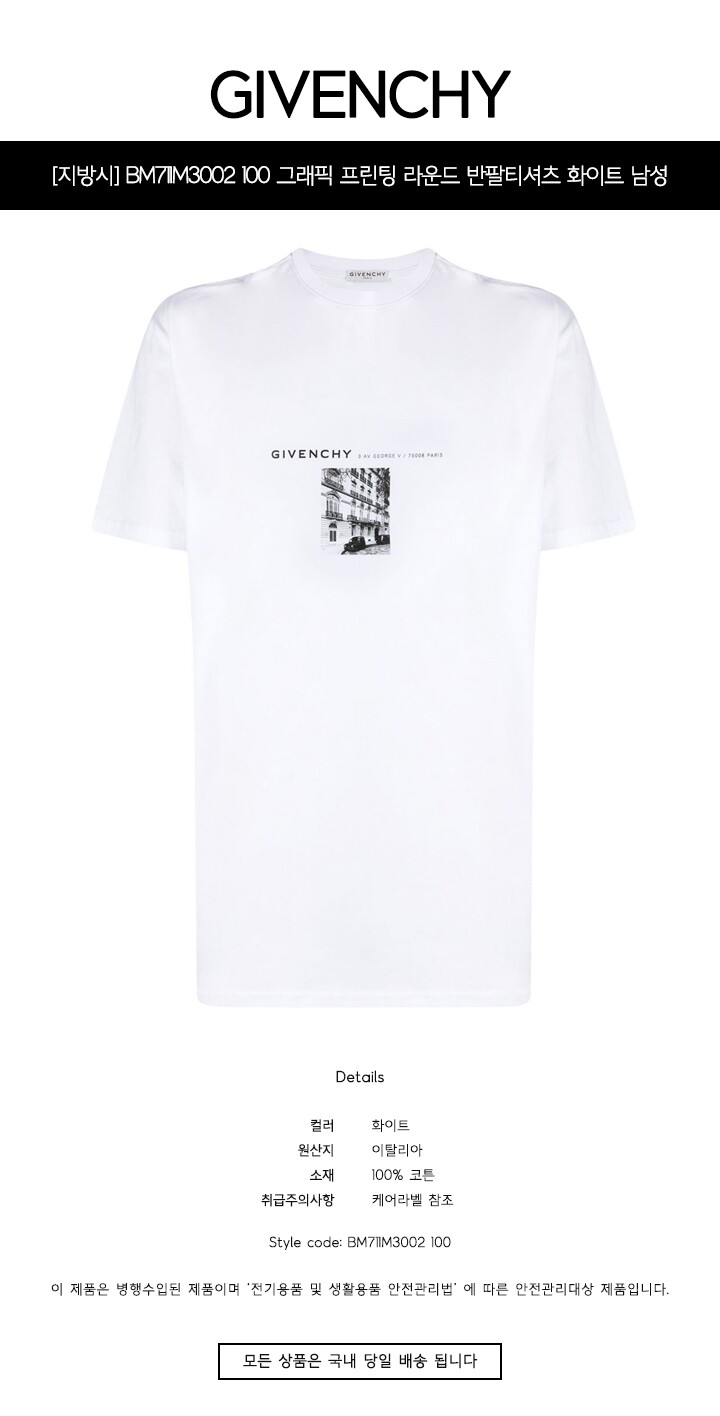 [명품] BM711M3002 100 그래픽 프린팅 라운드 반팔티셔츠 화이트 남성 티셔츠 /