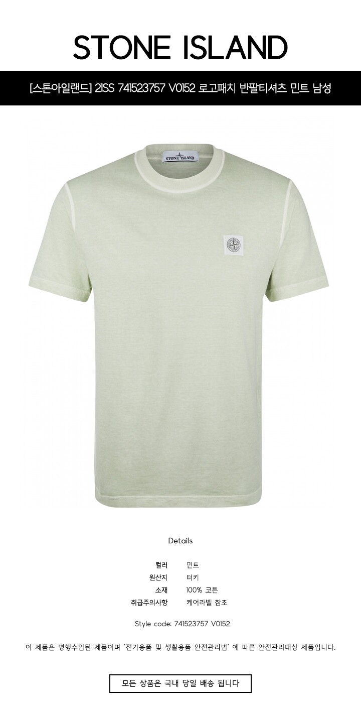 [명품] 21SS 741523757 V0152 로고패치 반팔티셔츠 민트 남성 티셔츠 /