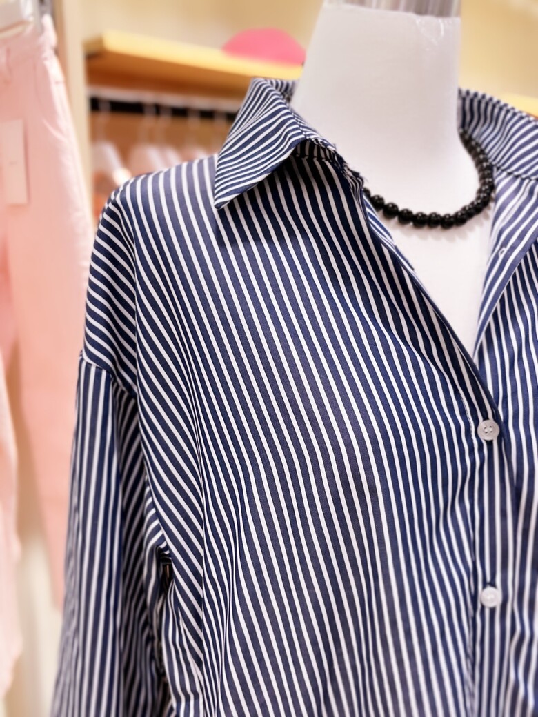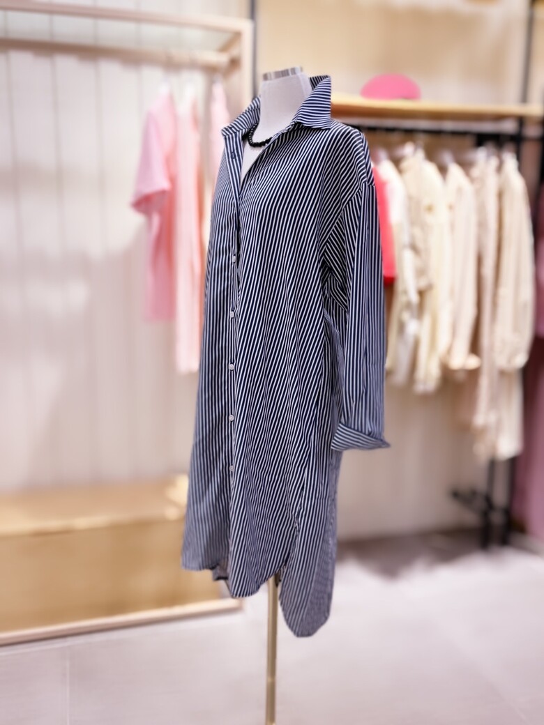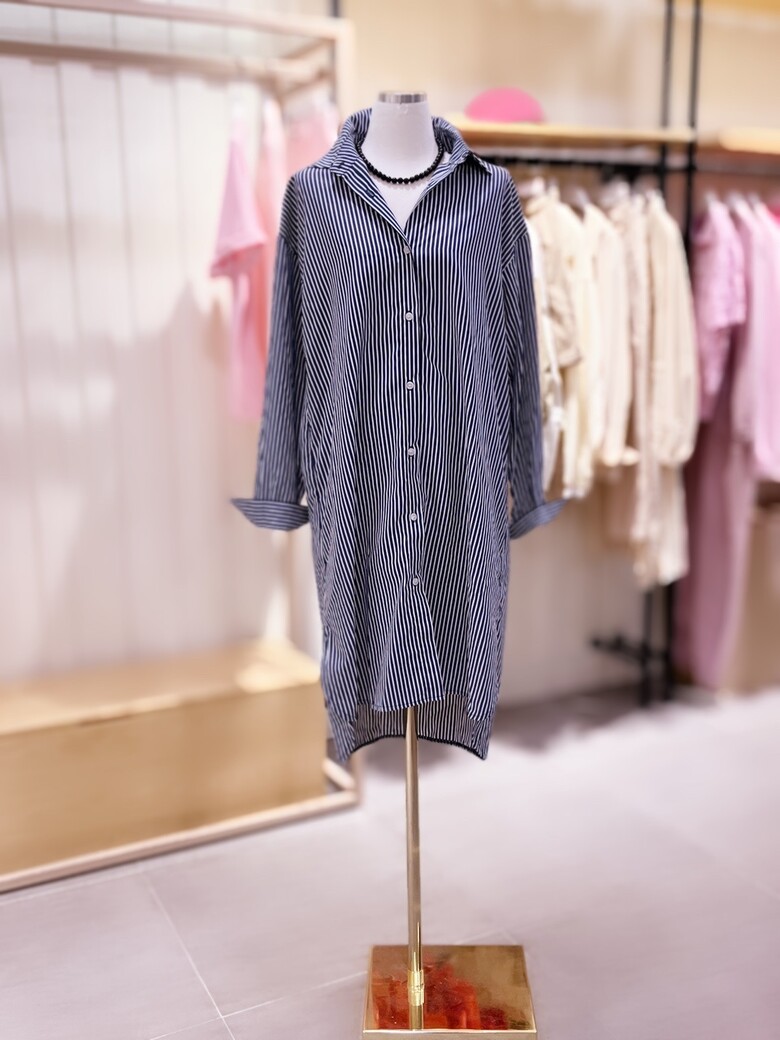 SE2SHF259_스트라이프 원단 롱기장 셔츠