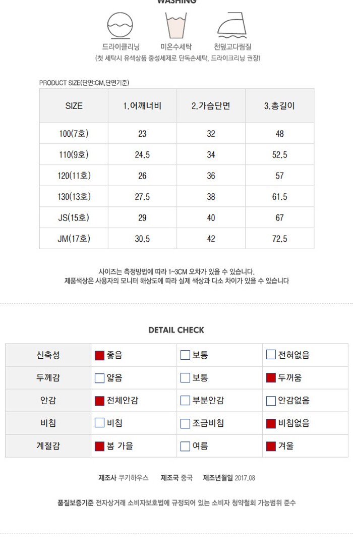 6. 세탁방법 및 취급시 주의사항 상세페이지참조