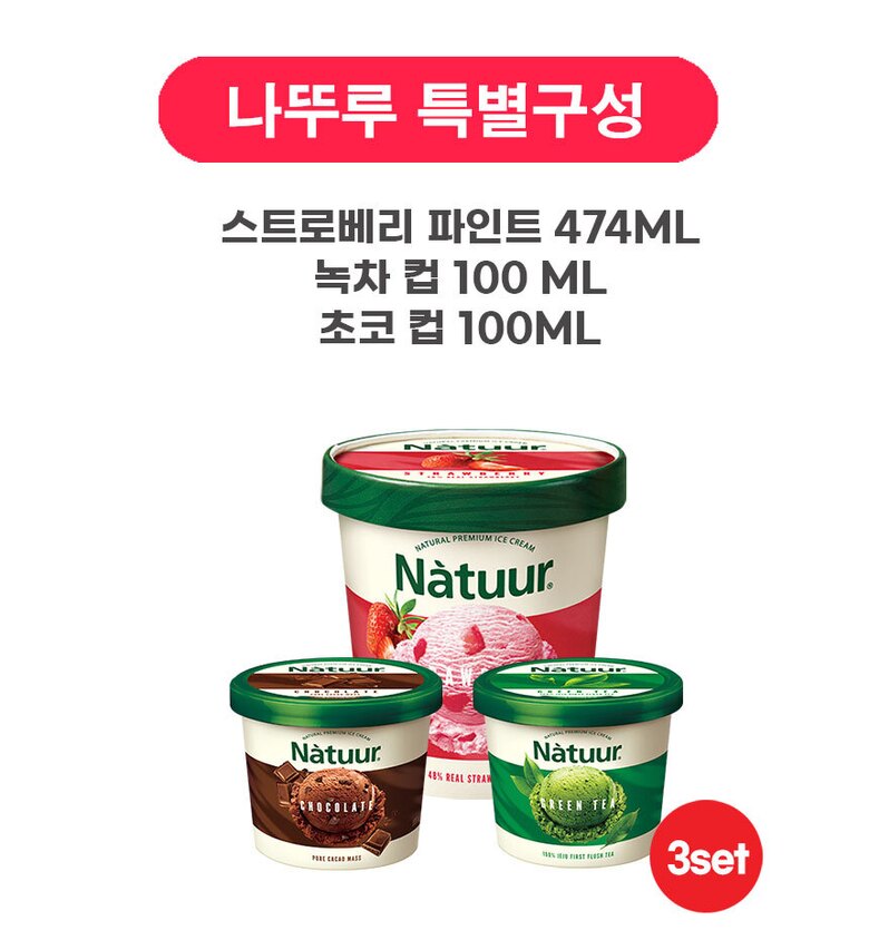 [나뚜루] 파인트 1개+컵 2개 세트 (스트로베리 파인트/녹차 컵/초코 컵)