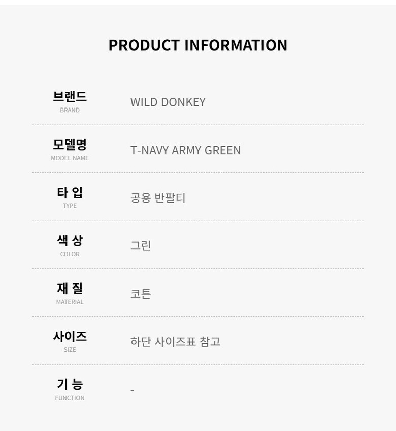 와일드동키 T-NAVY ARMY GREEN 공용 반팔티
