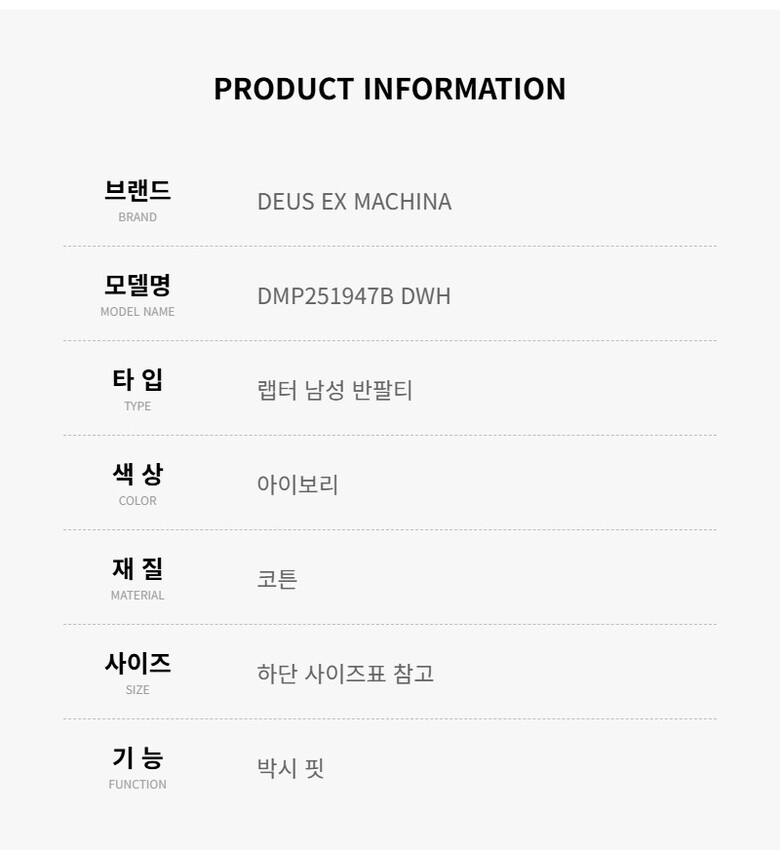 데우스엑스마키나 반팔 DMP251947B DWH 랩터 남성반팔티 당일발송