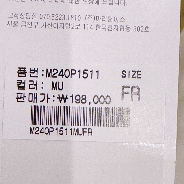 | 9. A/S 책임자와 전화번호 | AS 및 기타 문의 사항은 해당 매장 [이은자,053-254-5114] 으로 전화주시면 감사하겠습니다. |