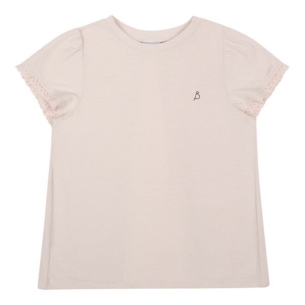 은은한 핑크 컬러가 매력적인 핑크 레이스 배색 반팔 티셔츠입니다.