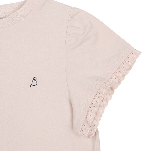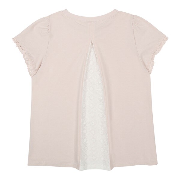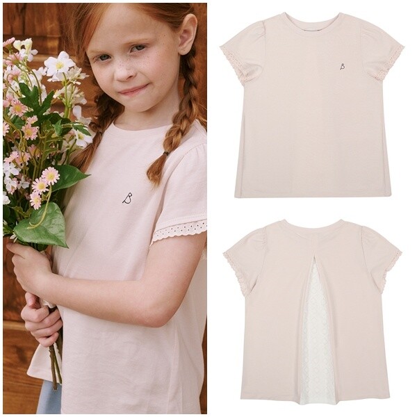 BZ34TS01PK_핑크 레이스 배색 반팔 티셔츠