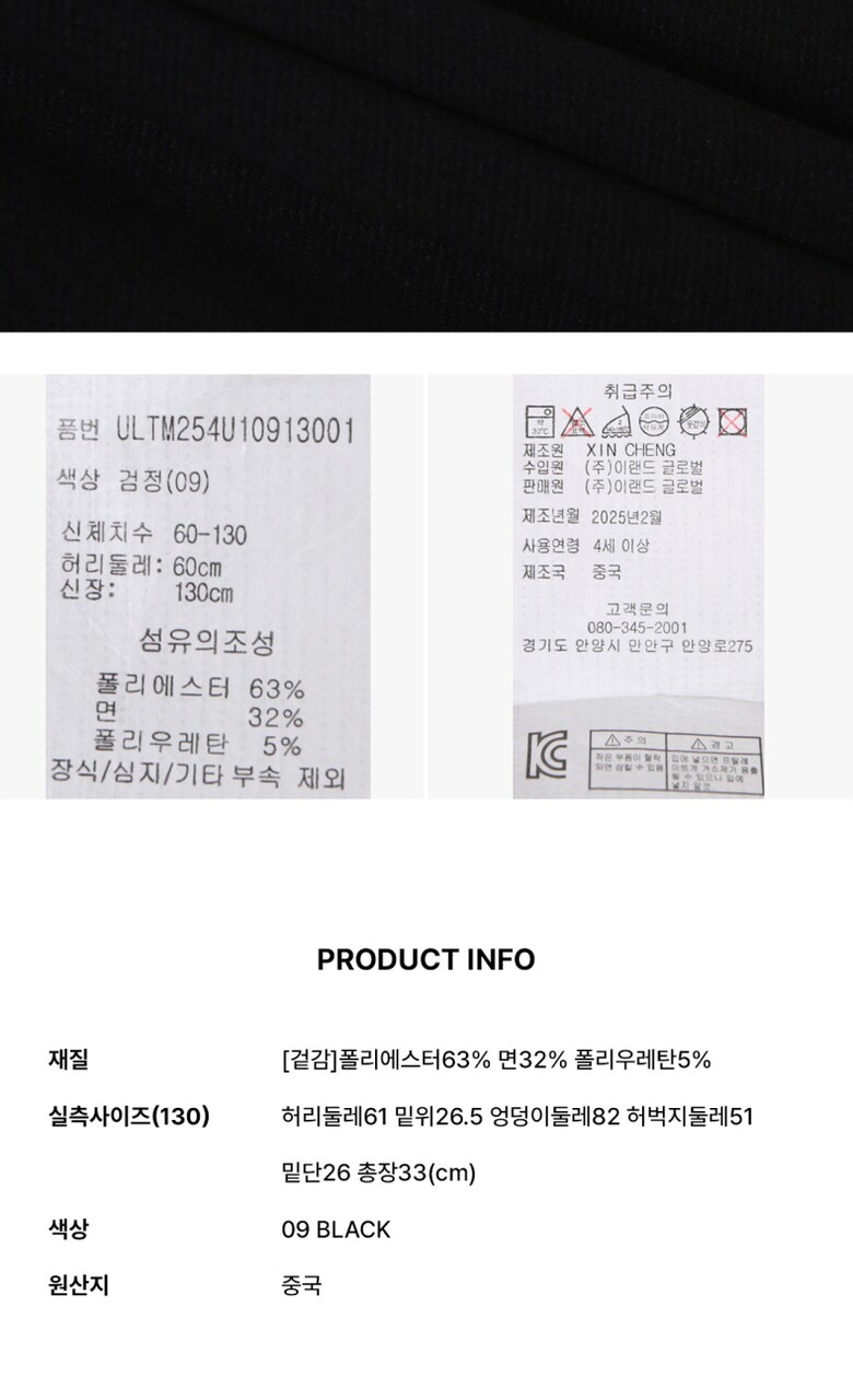 제품소재 : [겉감]폴리에스터63% 면32% 폴리우레탄5%
